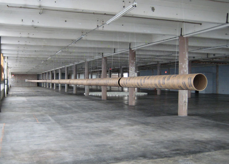 channel I, 1,080 plotter-paper cores, wood, conduit, audience, 10.4.8-10.24.8