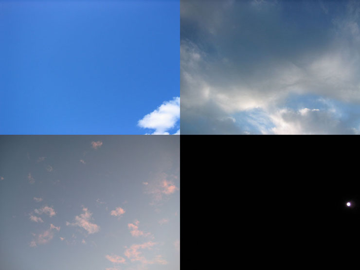 For over a year, Curtis took photograph for every 25 hours, of same spot in sky. Curtis took first photograph 6am, June 21, 2007, second photograph 7am, June 22, 2007, third photograph 8am, June 23, 2007...last photograph 5am, June 28, 2008, so loop would be seamless transition from day to night to day to night...