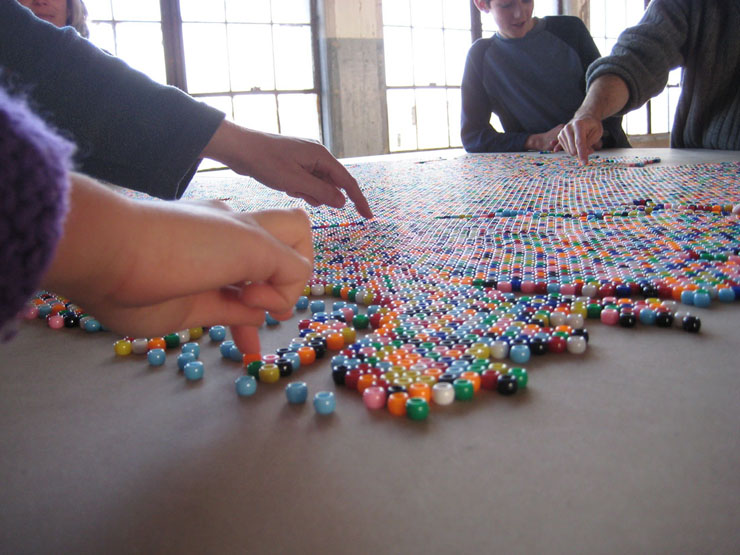 sort IV, 61,785 pony beads (6,865 each of nine colors), glass, wood, audience, 10.4.8-10.24.8